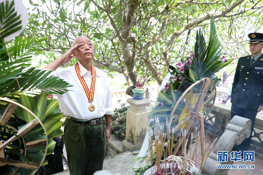9月30日,在越南北部河南省,一名中國援越老兵向中國烈士紀(jì)念碑敬禮。 中國駐越南大使館館員、中國援越老戰(zhàn)士及其親屬、在越中資機(jī)構(gòu)和留學(xué)生代表等30日前往位于越南河南省的金榜烈士陵園,祭奠長眠于此的14名中國援越烈士。越中友協(xié)副主席阮榮光等越方代表也參加了祭掃活動。 新華社記者 王迪 攝