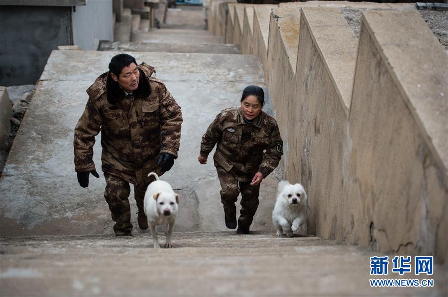王繼才夫婦在江蘇開山島上例行巡島(2017年2月21日攝)。新華社記者 李響 攝
