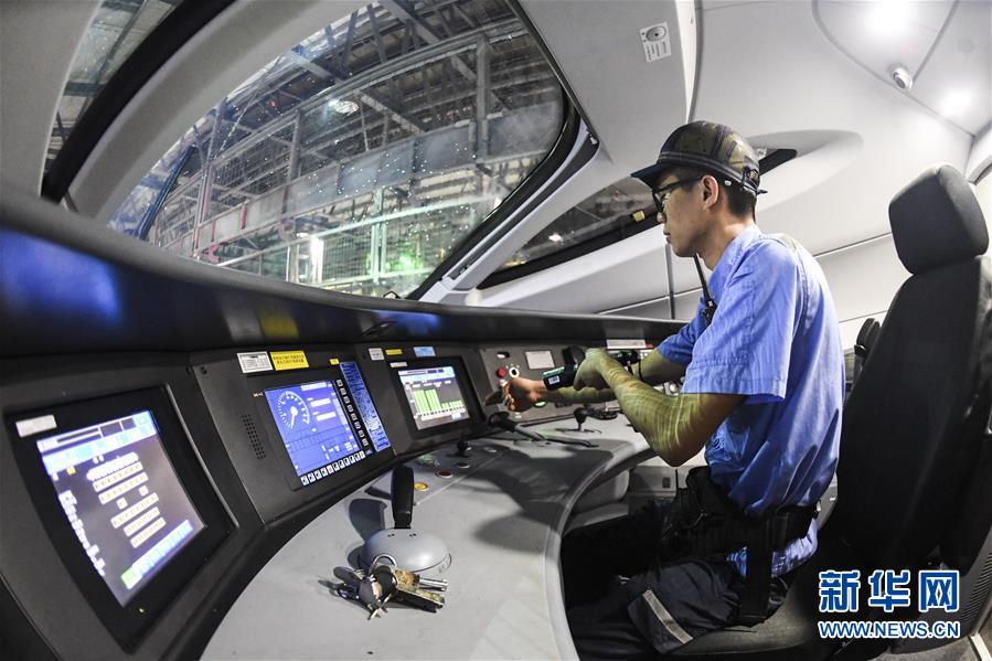 工人在擦洗車頂絕緣子(10月2日攝)。 新華社記者 曹祎銘 攝