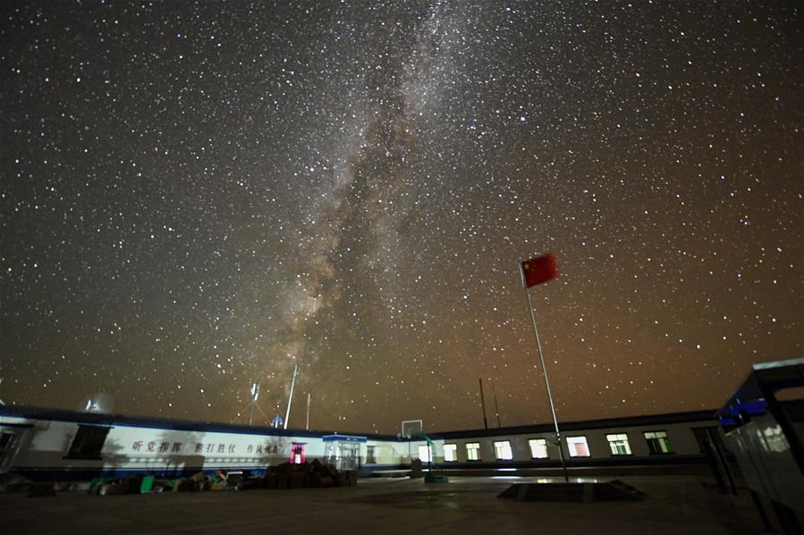 這是在內(nèi)蒙古自治區(qū)額濟納旗算井子邊境派出所拍攝的星空(9月26日攝)。新華社記者劉磊攝