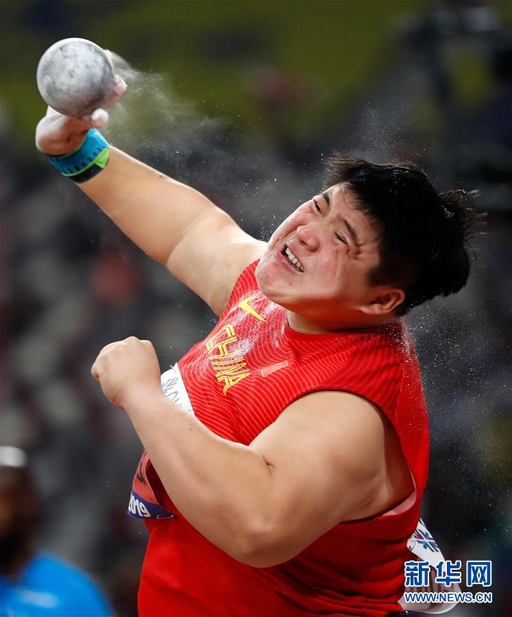 當(dāng)日,在卡塔爾多哈舉行的2019國際田聯(lián)世界田徑錦標(biāo)賽女子鉛球決賽中,衛(wèi)冕冠軍、中國選手鞏立姣以19米55的成績奪得冠軍。 新華社記者王麗莉攝