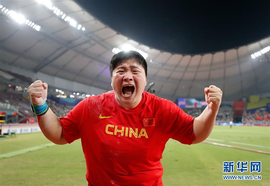 當(dāng)日,在卡塔爾多哈舉行的2019國際田聯(lián)世界田徑錦標賽女子鉛球決賽中,衛(wèi)冕冠軍、中國選手鞏立姣以19米55的成績奪得冠軍。 新華社記者王麗莉攝
