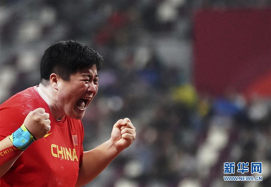 當(dāng)日,在卡塔爾多哈舉行的2019國際田聯(lián)世界田徑錦標(biāo)賽女子鉛球決賽中,衛(wèi)冕冠軍、中國選手鞏立姣以19米55的成績奪得冠軍。 新華社記者李鋼攝
