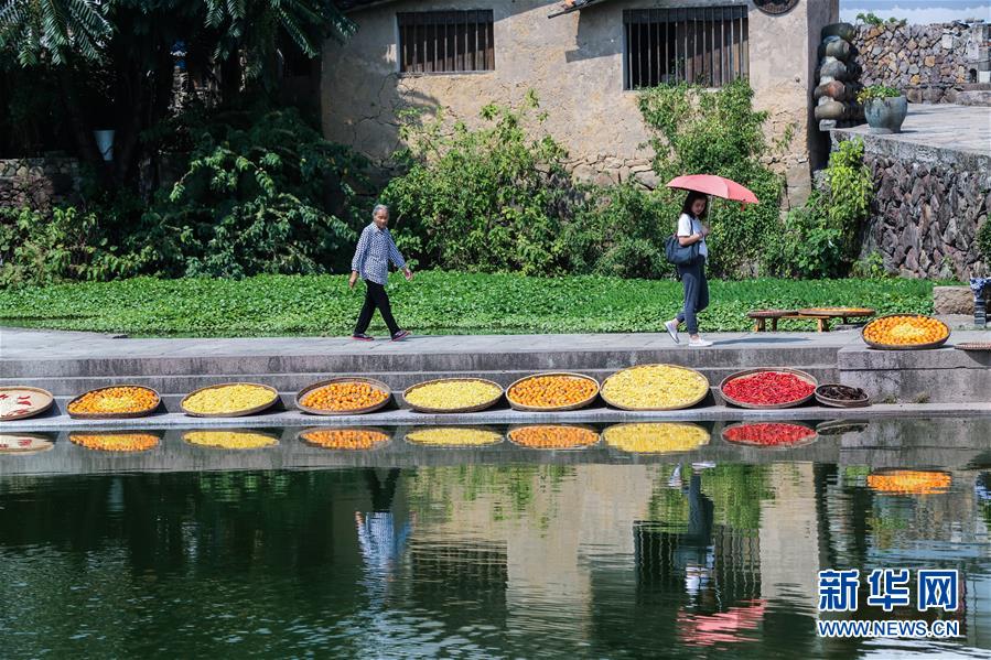 10月5日,新葉古村內(nèi)的“曬秋”美景。新華社記者徐昱攝