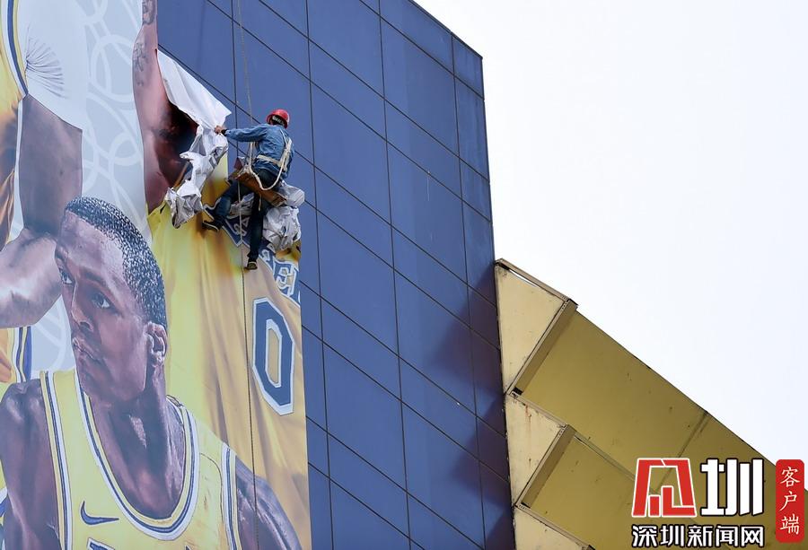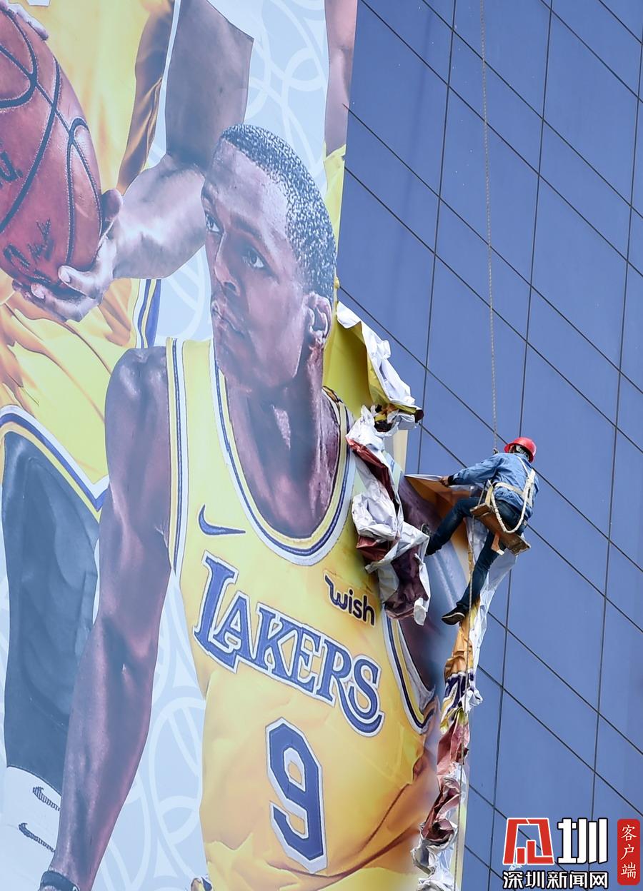 “2019NBA球迷之夜”取消,上海正大廣場(chǎng)外圍巨幅NBA中國(guó)賽海報(bào)被拆除。