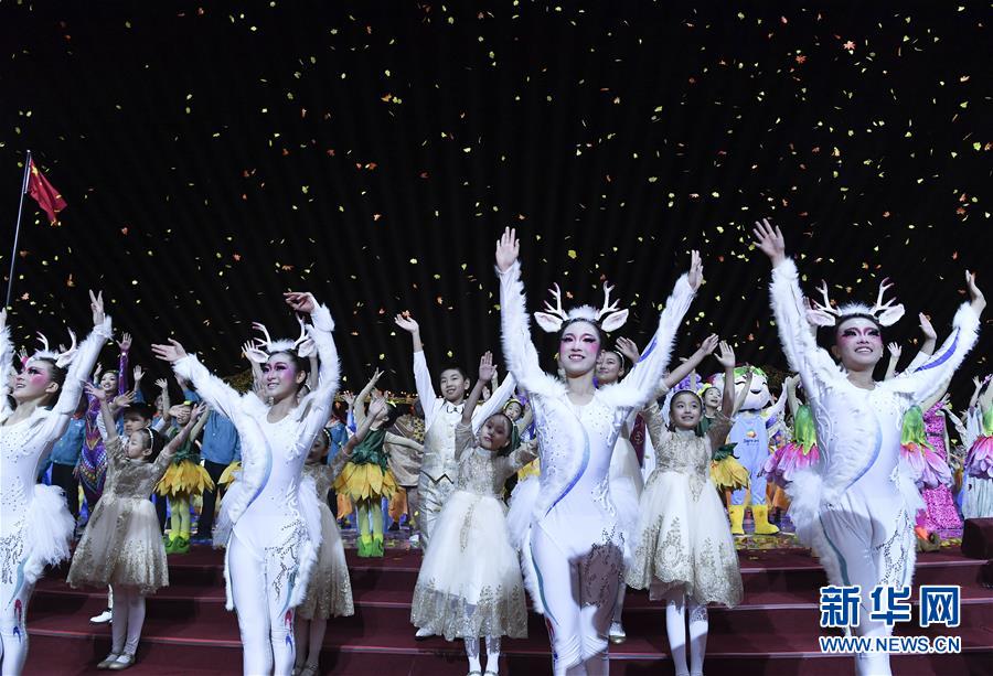 10月9日,演員在節(jié)目“綠野漫游”中表演。當日,2019年中國北京世界園藝博覽會閉幕式在北京舉行。新華社記者翟健嵐攝
