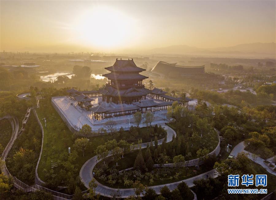 北京世園會園區(qū)內的永寧閣(10月7日無人機拍攝)。新華社記者才揚攝