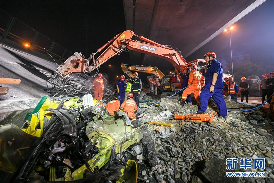2019年10月10日晚,江蘇無錫,312國道上海方向錫港路上跨橋路段出現(xiàn)橋面垮塌,現(xiàn)場有多輛轎車被壓,具體傷亡情況不詳。救援車輛已抵達(dá)現(xiàn)場。