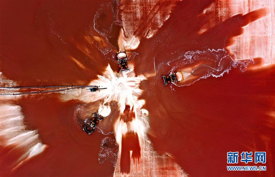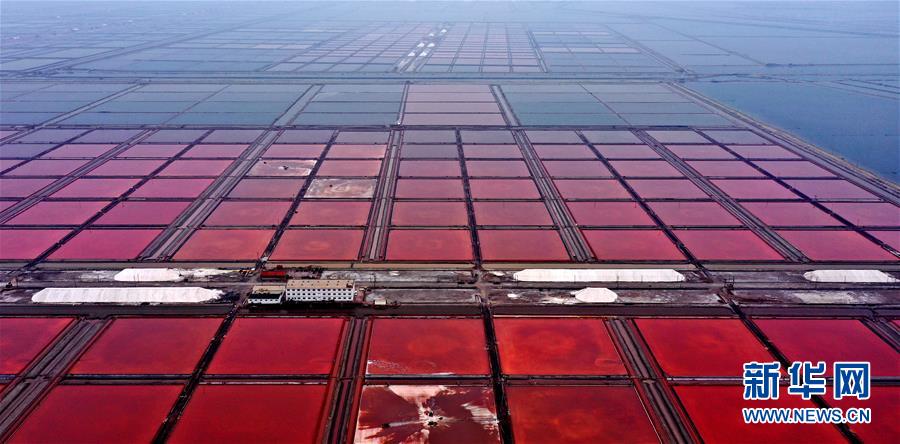 日前,山東省無棣縣境內(nèi)的魯北鹽場進(jìn)入海鹽收獲季節(jié),星羅棋布的鹽池將大地裝扮得繽紛如畫。無棣縣位于山東省北部渤海之濱,全縣擁有鹽田365萬公畝,是我國重要的海鹽生產(chǎn)基地。據(jù)無棣縣工信局統(tǒng)計(jì),今年1-9月份,當(dāng)?shù)卦}產(chǎn)量111.7萬噸。