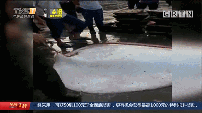 巨型“魔鬼魚”驚現(xiàn)碼頭,300斤!8名壯漢才能拖動?。ㄒ曨l)