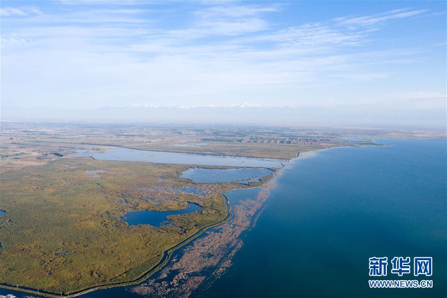 這是新疆博斯騰湖美景(10月12日無人機(jī)拍攝)。入秋以來,新疆博斯騰湖碧波蕩漾,美景如畫,吸引各地游客前來游玩。新華社記者丁磊 攝