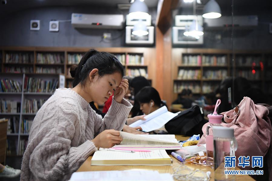10月12日,一位讀者在湖南圖書館6點至24點開放的自助圖書館內(nèi)看書學(xué)習(xí)。新華社記者薛宇舸攝