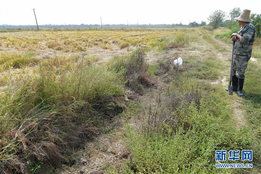 江西省南昌市南昌縣蔣巷鎮(zhèn)一農(nóng)戶在田里查看中稻的收割情況和晚稻的生長情況,農(nóng)田兩側(cè)的水渠已干涸多日(10月10日攝)。 7月下旬至10月初,江西省平均降雨量為96毫米,比多年均值偏少約七成,排歷史同期倒數(shù)第一位,持續(xù)的少雨天氣導致江西省主要江河水位持續(xù)走低,多地出現(xiàn)不同程度的旱情。 針對當前旱情,江西各地紛紛采取措施,積極組織群眾開展抗旱自救,力爭將旱情帶來的損失降到最低。 新華社記者 彭昭之 攝