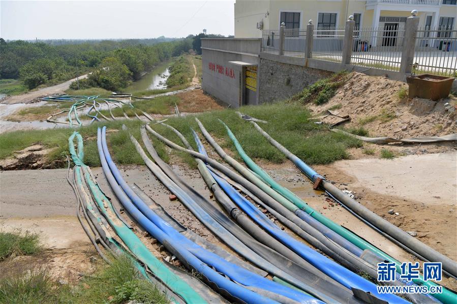 在江西省南昌市南昌縣蔣巷鎮(zhèn),工作人員通過(guò)水泵從贛江中抽水保障當(dāng)?shù)剞r(nóng)業(yè)用水。這是鋪設(shè)的水管(10月10日攝)。 7月下旬至10月初,江西省平均降雨量為96毫米,比多年均值偏少約七成,排歷史同期倒數(shù)第一位,持續(xù)的少雨天氣導(dǎo)致江西省主要江河水位持續(xù)走低,多地出現(xiàn)不同程度的旱情。 針對(duì)當(dāng)前旱情,江西各地紛紛采取措施,積極組織群眾開(kāi)展抗旱自救,力爭(zhēng)將旱情帶來(lái)的損失降到最低。 新華社記者 彭昭之 攝