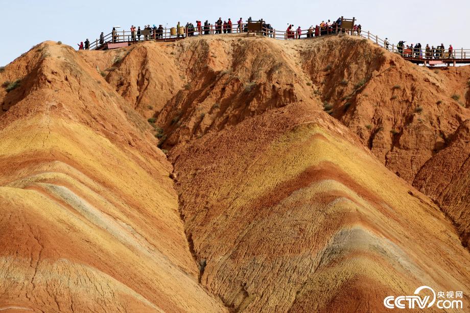 央視網(wǎng)消息:2019年10月15日,金秋時(shí)節(jié),位于甘肅省張掖市臨澤縣的七彩丹霞景區(qū)進(jìn)入旅游旺季,吸引眾多游人紛至沓來(lái)。張掖七彩丹霞景區(qū),分布面積約50公里,是中國(guó)北方干旱地區(qū)發(fā)育最典型的丹霞地貌。在方圓數(shù)十平方公里的范圍內(nèi),隨處可見有紅、黃、橙、綠、白等多種鮮艷的色塊或線條,把一座座山峰,一條條溝壑,裝點(diǎn)成一幅幅絢麗多姿、燦爛奪目的畫圖。圖片來(lái)源:視覺中國(guó)