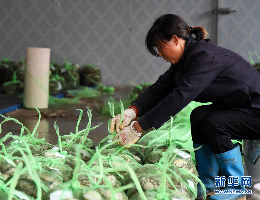 10月17日,東營(yíng)市惠澤農(nóng)業(yè)科技有限公司黃河口大閘蟹養(yǎng)殖區(qū)的工人在包裝大閘蟹。新華社記者 王凱 攝