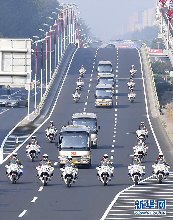 9月29日上午,國(guó)家勛章和國(guó)家榮譽(yù)稱號(hào)獲得者乘坐禮賓車從住地出發(fā),在國(guó)賓護(hù)衛(wèi)隊(duì)的護(hù)衛(wèi)下,前往人民大會(huì)堂參加中華人民共和國(guó)國(guó)家勛章和國(guó)家榮譽(yù)稱號(hào)頒授儀式。 新華社記者 燕雁 攝