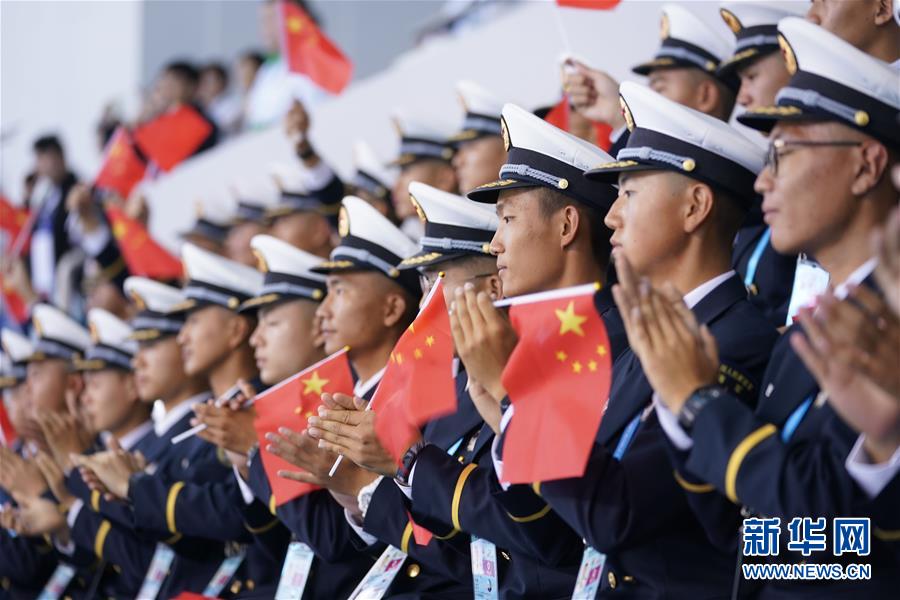 10月20日,中國隊選手吳慧敏(右)、包雪怡在升旗儀式上。當日,在武漢舉行的第七屆世界軍人運動會水上救生項目女子50米假人救生決賽中,中國隊選手吳慧敏以33秒93的成績奪得冠軍,隊友包雪怡以35秒79的成績獲得亞軍。新華社記者肖藝九攝