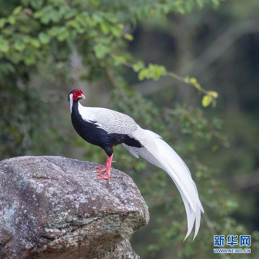 一只白鷴在福建省南靖縣鵝仙洞自然保護區(qū)一處巖石上停歇(10月20日攝)。