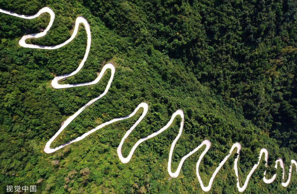 公路從山腳到山頂傾角約70度的山坡上以“S”形順山勢(shì)而建,蜿蜒盤旋,經(jīng)過堰渠溝、過橋溝、花尖、荒坡、卡門等懸崖地段,形成41道拐,猶如掛在懸崖上,甚是壯觀,成為了當(dāng)?shù)匾坏里L(fēng)景。