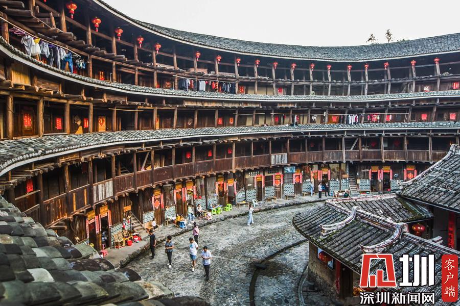這個村的土樓沿河而建,并非常均勻地分布在兩岸,土樓形態(tài)豐富,有常見的方形、圓形土樓,還有圍裙形、曲尺形土樓,最獨特的是還有浙杭水鄉(xiāng)模式單院式土木、磚木結構的吊角樓,形成大樓帶小樓、高低錯落布局的奇妙景觀。