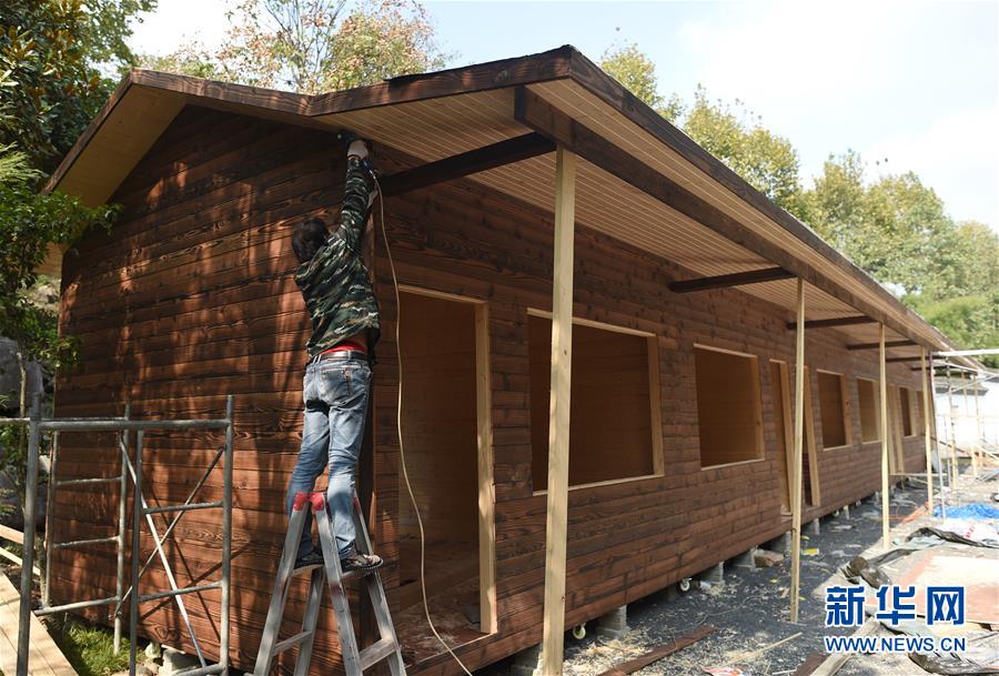 10月24日,一名工人在對(duì)班竹村新建的旅游設(shè)施進(jìn)行外部裝修。新華社記者韓傳號(hào)攝