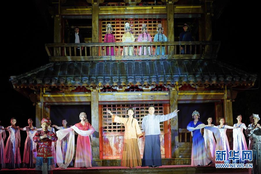 10月24日,演員在表演實景劇《那年芳華》。 河北省唐山市在南湖景區(qū)打造沉浸式實景劇《那年芳華》。該劇以南湖景區(qū)的自然景觀為載體,利用光影藝術(shù),展現(xiàn)了梨園人的家國情懷。 新華社記者 邢廣利 攝