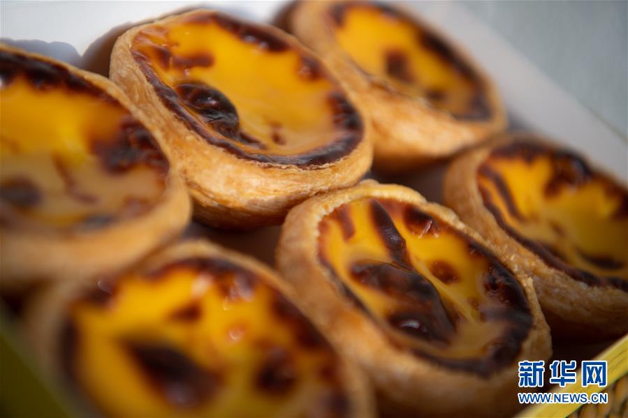 這是10月24日早間拍攝的澳門特色小吃——葡式蛋撻。2018年10月23日,港珠澳大橋正式開通。新華社記者張金加攝