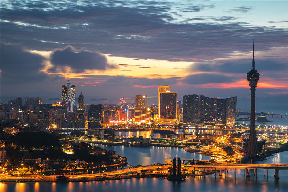 2018年6月16日,澳門,城市風(fēng)光。遠(yuǎn)處的港珠澳大橋。徐小天/視覺中國