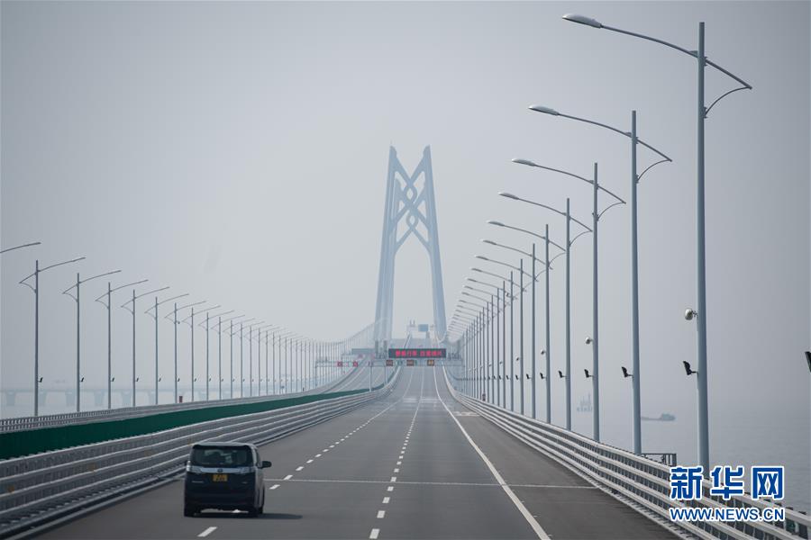 10月24日下午,車(chē)輛駛向港珠澳大橋青州航道橋。2018年10月23日,港珠澳大橋正式開(kāi)通。新華社記者張金加攝