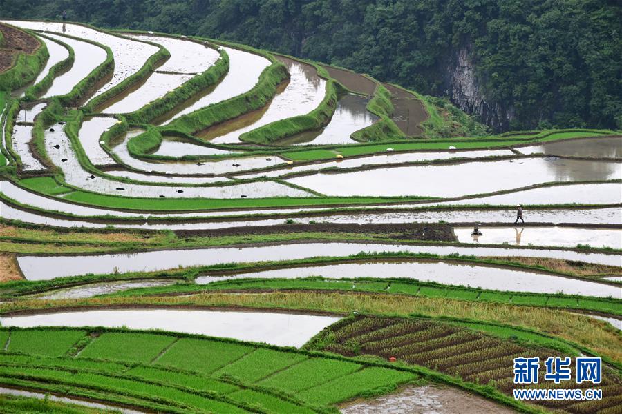 5月18日,農民從貴州省丹寨縣龍泉鎮(zhèn)高要梯田里走過。初夏時節(jié),位于貴州省丹寨縣龍泉鎮(zhèn)的高要梯田景色優(yōu)美。新華社記者楊文斌攝