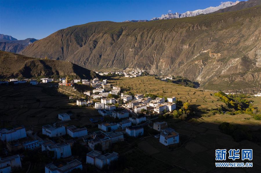 10月29日無(wú)人機(jī)拍攝的鄉(xiāng)城縣青麥鄉(xiāng)南吾村藏鄉(xiāng)田園風(fēng)光。新華社記者江宏景攝