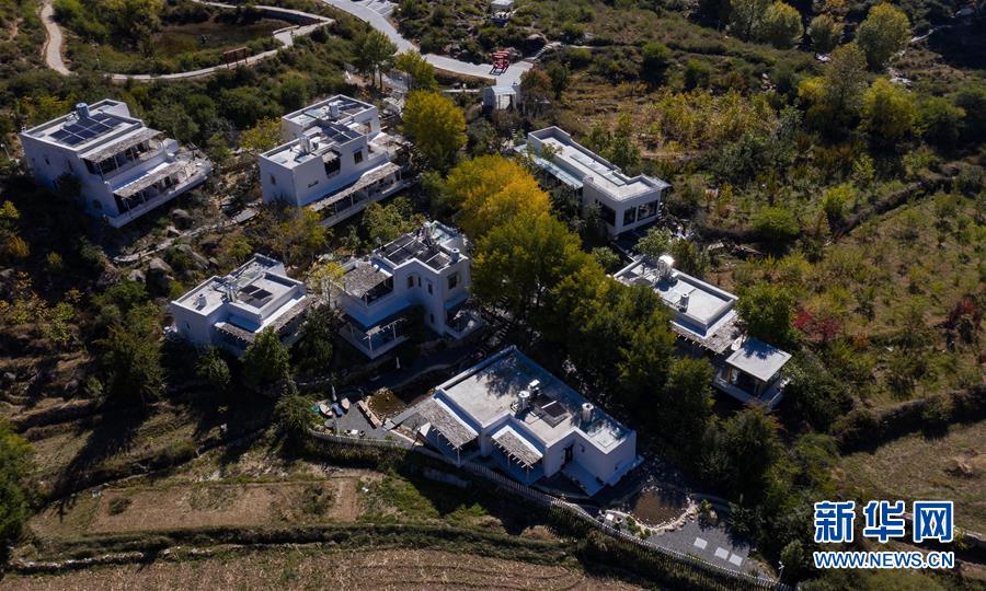 10月29日,四川省鄉(xiāng)城縣的定曲河峽谷的青德鄉(xiāng),民宿“皈院”錯落有致,保留白藏房傳統(tǒng)民居特色(無人機拍攝)。新華社記者江宏景攝