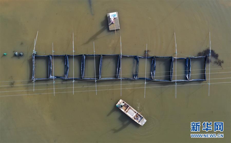 江西省南昌市新建區(qū)象山鎮(zhèn)河林村的農戶正在大閘蟹養(yǎng)殖基地進行捕撈(10月29日無人機拍攝)。 時下正值大閘蟹收獲的季節(jié),江西省南昌市新建區(qū)象山鎮(zhèn)河林村的村民忙著進行大閘蟹的捕撈、包裝和外銷工作。近年來,當?shù)匾劳休爡^(qū)內河道縱橫、水田眾多的資源優(yōu)勢,支持鼓勵當?shù)剞r村引進發(fā)展大閘蟹養(yǎng)殖業(yè),目前已有大閘蟹特色養(yǎng)殖基地300余畝,年產值超過200萬元,為當?shù)剞r戶開辟一條特色養(yǎng)殖的致富路。 新華社記者 彭昭之 攝