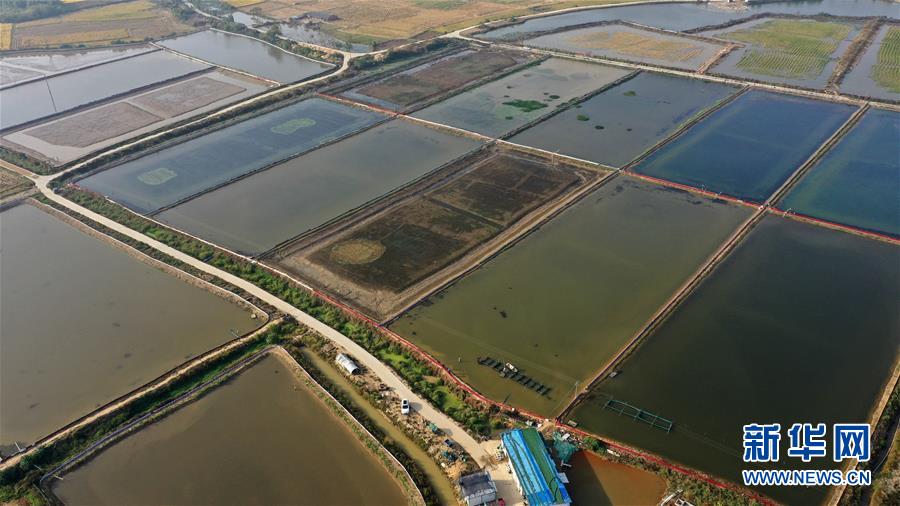 江西省南昌市新建區(qū)象山鎮(zhèn)河林村的大閘蟹養(yǎng)殖基地(10月29日無人機拍攝)。  新華社記者 彭昭之 攝