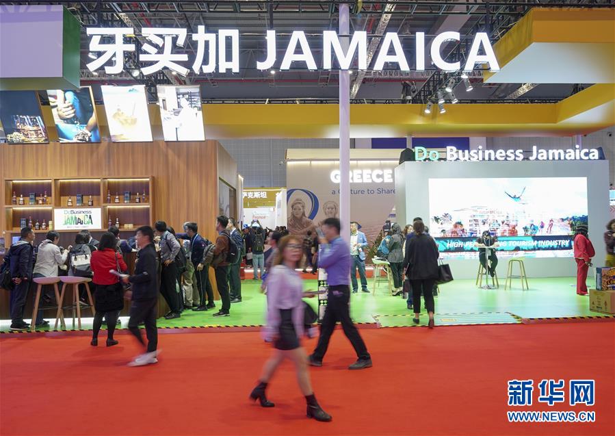 參觀者在第二屆進博會牙買加國家館參觀(11月6日攝)。新華社記者殷剛攝