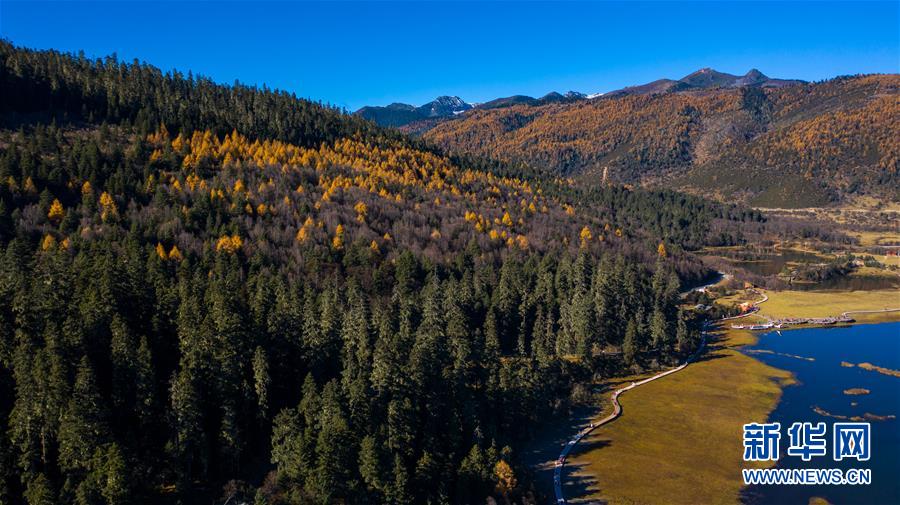 這是無人機拍攝的普達措國家公園一景(11月6日攝)。 新華社記者 胡超 攝