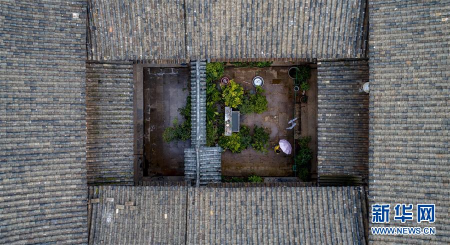 放暑假的楊蓉在石屏縣異龍鎮(zhèn)符家營(yíng)村家中(8月8日無(wú)人機(jī)拍攝)。新華社記者江文耀攝