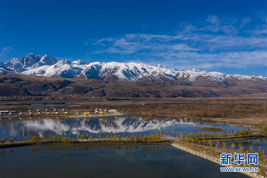 317國道邊的四川甘孜縣雅礱江濕地公園(11月3日無人機(jī)拍攝)。新華社記者江宏景攝