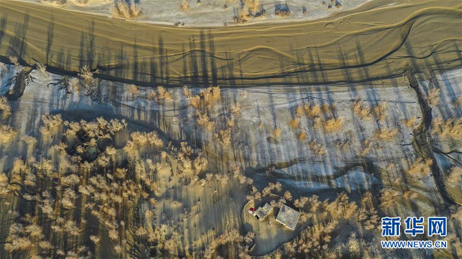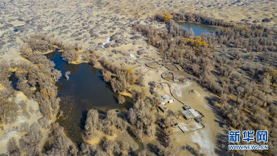 這是在克里雅河沿岸拍攝的一處民居(11月16日無人機拍攝)。 新華社記者 胡虎虎 攝