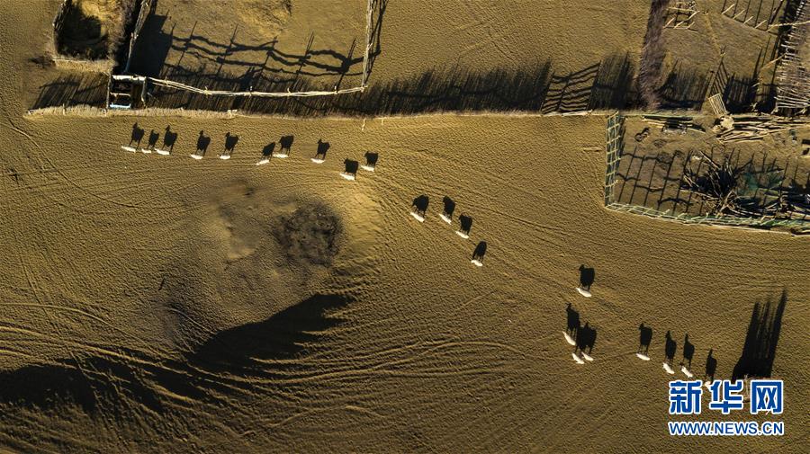 這是在克里雅河沿岸綠洲達里雅布依拍攝的羊群(11月13日無人機拍攝)。 新華社記者 沈伯韓 攝