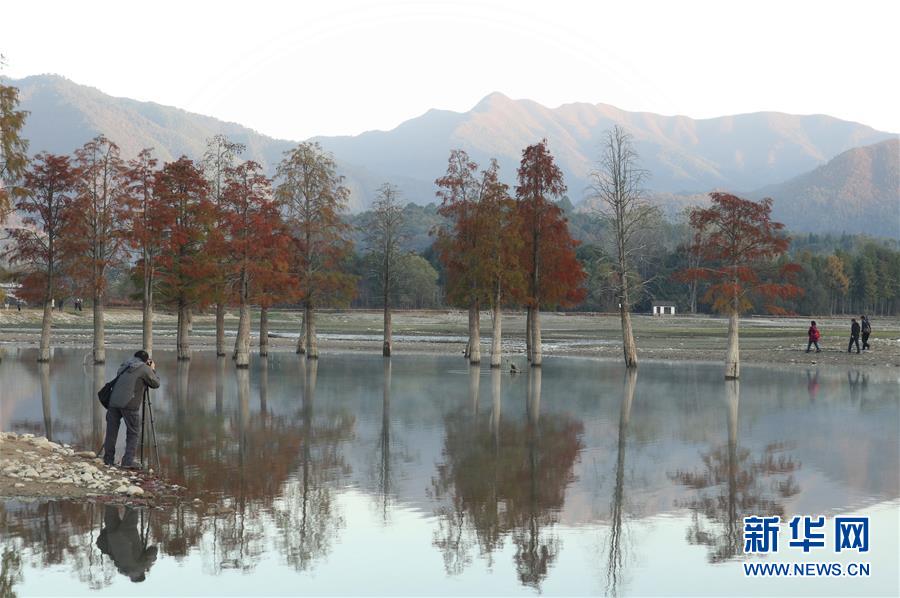 11月14日,游客在奇墅湖拍攝風(fēng)光。新華社記者劉軍喜攝