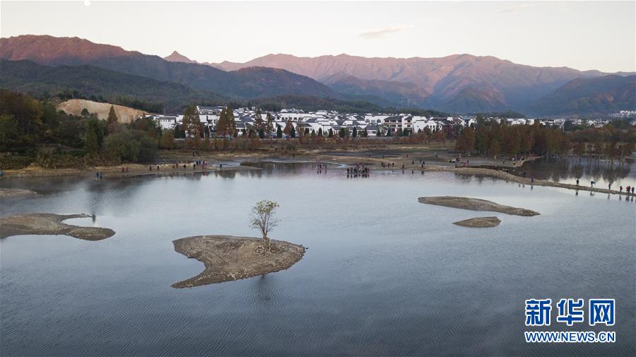 11月14日拍攝的安徽黟縣奇墅湖晨景(無人機(jī)航拍)。新華社記者張笑宇攝