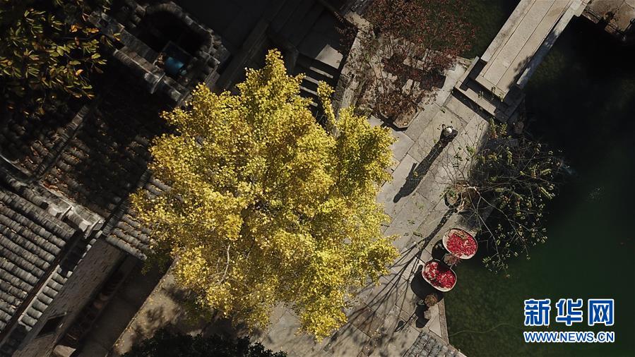 這是11月15日無人機(jī)拍攝的安徽黟縣宏村一家民宿的院落。新華社記者張端攝