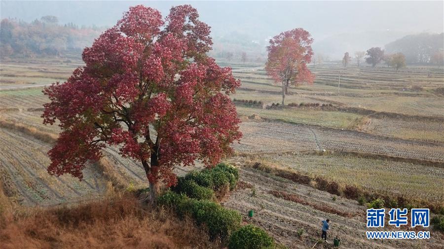 這是11月14日無人機(jī)拍攝的安徽黟縣塔川風(fēng)景區(qū)。新華社記者張端攝