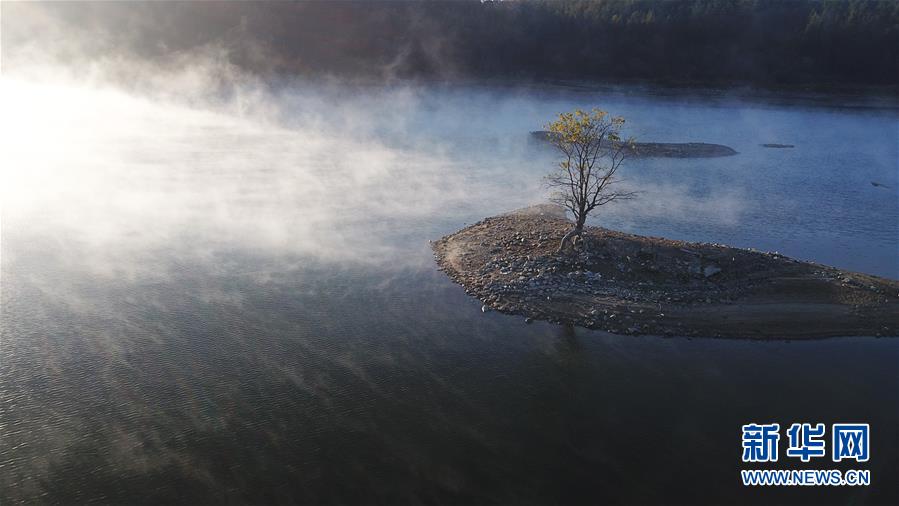 這是11月15日無人機(jī)拍攝的安徽黟縣奇墅湖晨景。新華社記者張笑宇攝