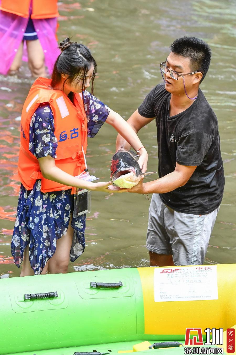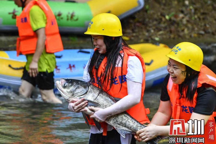 “韋帕”剛登陸廣東,清遠(yuǎn)古龍峽漂流景區(qū)就開始泄洪,上萬斤水庫大魚隨著泄洪道“越獄”,引來上千名游客下艇捕魚,漂流河道上演了幾個小時的“人魚”大戰(zhàn),有的捕魚高手竟然捉了一漂流艇的魚回家。