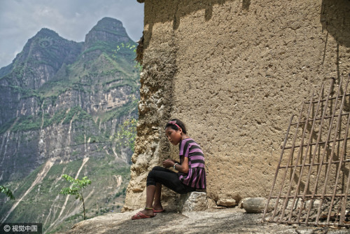 阿土勒爾村過去建有連接山下的索道,不過開動(dòng)一次索道需要幾百度電,村里人根本用不起,后來索道就拆除了。阿皮幾體告訴記者,如果單從安全問題考慮,在現(xiàn)有的崖壁道路上用鋼筋焊接的梯子代替藤梯,再添加防護(hù)欄,怎么也得耗資幾百萬。圖片來源:視覺中國