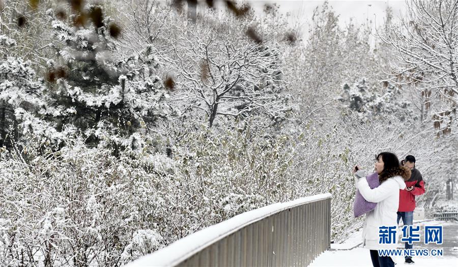 11月30日,行人在觀賞雪景。11月29日起,北京市出現(xiàn)大范圍降雪,積雪覆蓋了北京城區(qū),為人們帶來了驚喜。 新華社記者 李欣 攝