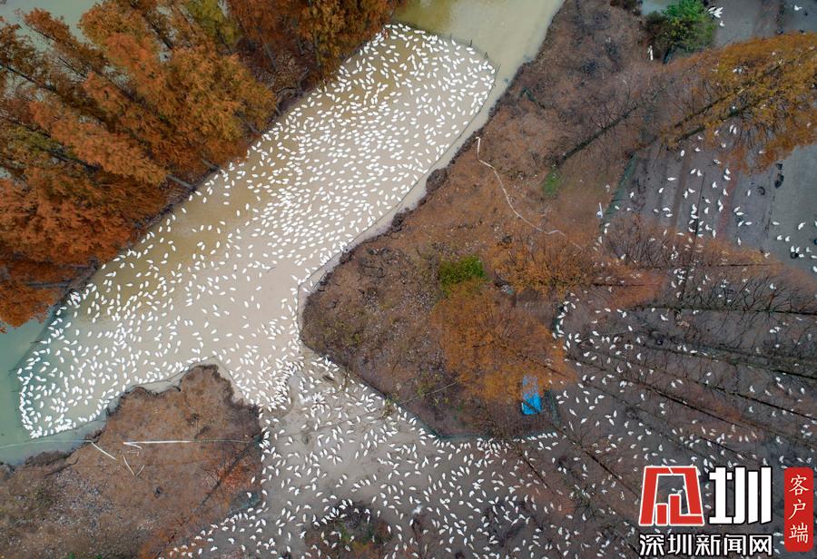 江蘇泗洪5000多只鵝林場吃食 場面壯觀
